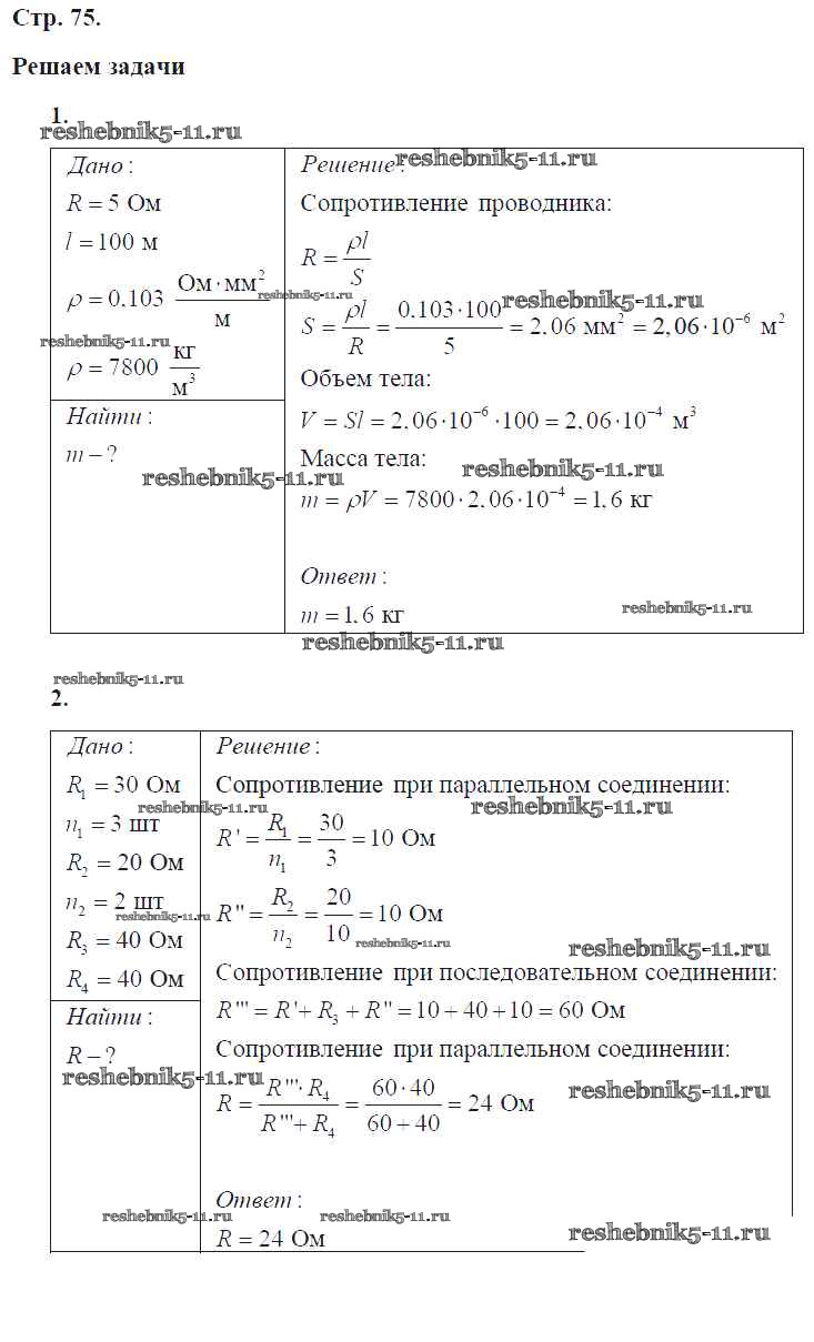 Готовая домашняя работа с ответами по Физике за 8 класс Артеменков, Белага, Воронцова Тетрадь-тренажер Сферы Просвещение 2012 ФГОС - Страницы тетради 75