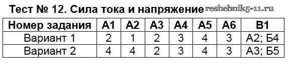 Готовая домашняя работа с ответами по Физике за 8 класс Бобошина Контрольно-измерительные материалы (КИМ) Экзамен 2014 ФГОС - Тесты Тест-12. Сила тока и напряжение