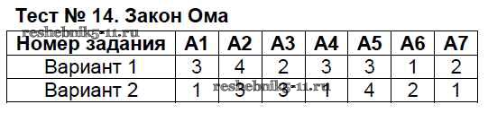 Готовая домашняя работа с ответами по Физике за 8 класс Бобошина Контрольно-измерительные материалы (КИМ) Экзамен 2014 ФГОС - Тесты Тест-14. Закон Ома