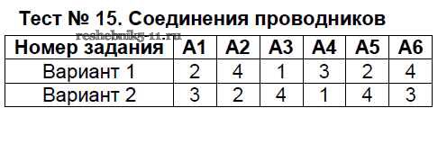 Готовая домашняя работа с ответами по Физике за 8 класс Бобошина Контрольно-измерительные материалы (КИМ) Экзамен 2014 ФГОС - Тесты Тест-15. Соединения проводников