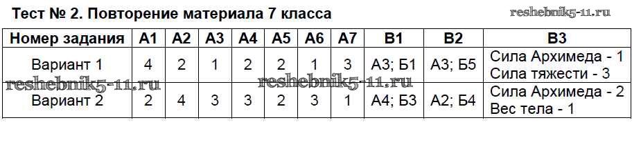Физика за 8 класс Бобошина Контрольно-измерительные материалы (КИМ) Экзамен тест Тест-2. Повторение материала 7 класса