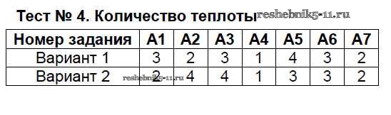 Готовая домашняя работа с ответами по Физике за 8 класс Бобошина Контрольно-измерительные материалы (КИМ) Экзамен 2014 ФГОС - Тесты Тест-4. Количество теплоты