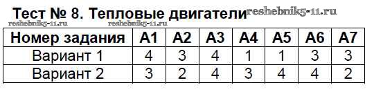 Готовая домашняя работа с ответами по Физике за 8 класс Бобошина Контрольно-измерительные материалы (КИМ) Экзамен 2014 ФГОС - Тесты Тест-8. Тепловые двигатели