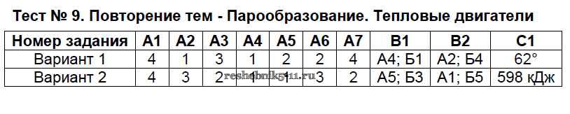 Готовая домашняя работа с ответами по Физике за 8 класс Бобошина Контрольно-измерительные материалы (КИМ) Экзамен 2014 ФГОС - Тесты Тест-9. Повторение тем - Парообразование. Тепловые двигатели