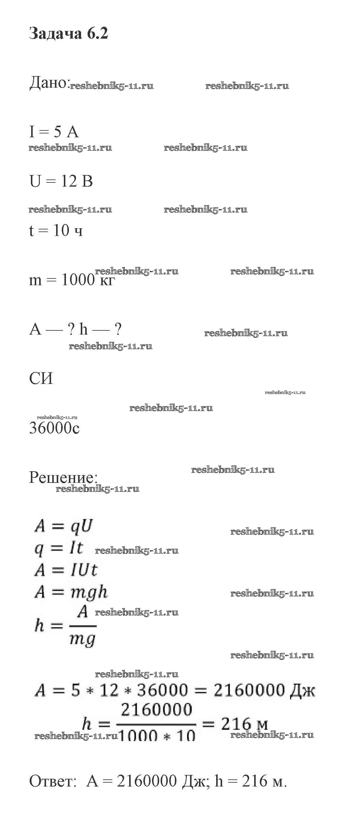 Готовая домашняя работа с ответами по Физике за 8 класс Кабардин Учебник Архимед Просвещение 2016 ФГОС - Задачи 6