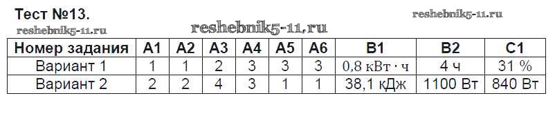 Готовая домашняя работа с ответами по Физике за 8 класс Зорин Контрольно-измерительные материалы (КИМ) ВАКО 2017 ФГОС - Тесты 13