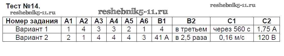 Готовая домашняя работа с ответами по Физике за 8 класс Зорин Контрольно-измерительные материалы (КИМ) ВАКО 2017 ФГОС - Тесты 14