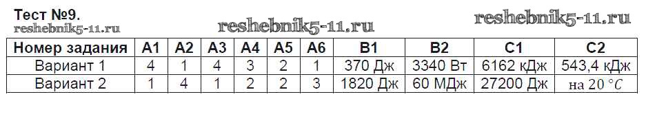 Готовая домашняя работа с ответами по Физике за 8 класс Зорин Контрольно-измерительные материалы (КИМ) ВАКО 2017 ФГОС - Тесты 9