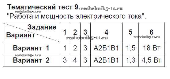 Готовая домашняя работа с ответами по Физике за 8 класс Слепнева Тесты Вертикаль Дрофа 2018 ФГОС - Тесты 9