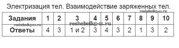 Готовая домашняя работа с ответами по Физике за 8 класс Чеботарева Тесты УМК Экзамен 2017 ФГОС - Часть 1 1. Электризация тел. Взаимодействие заряженных тел