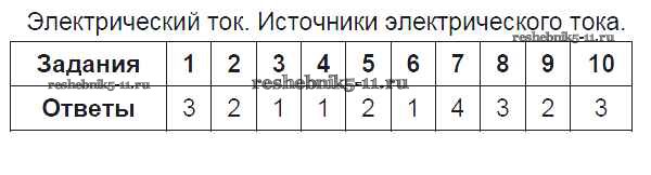 Готовая домашняя работа с ответами по Физике за 8 класс Чеботарева Тесты УМК Экзамен 2017 ФГОС - Часть 1 7. Источники электрического тока. Электрический ток