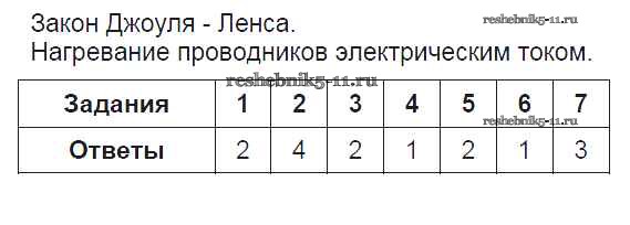 Физика за 8 класс Чеботарева Тесты УМК Экзамен часть 2 13. Закон Джоуля-Ленса