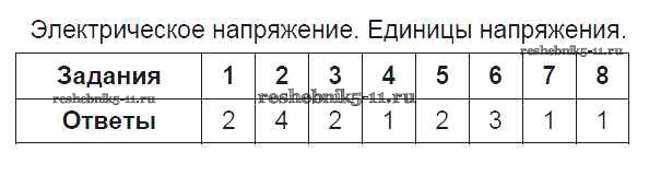 Готовая домашняя работа с ответами по Физике за 8 класс Чеботарева Тесты УМК Экзамен 2017 ФГОС - Часть 2 3. Электрическое напряжение. Единицы напряжения
