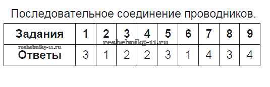 Готовая домашняя работа с ответами по Физике за 8 класс Чеботарева Тесты УМК Экзамен 2017 ФГОС - Часть 2 9. Последовательное соединение проводников