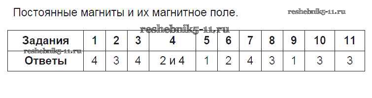 Готовая домашняя работа с ответами по Физике за 8 класс Чеботарева Тесты УМК Экзамен 2017 ФГОС - Электромагнитные явления 3. Постоянные магниты и их магнитное поле