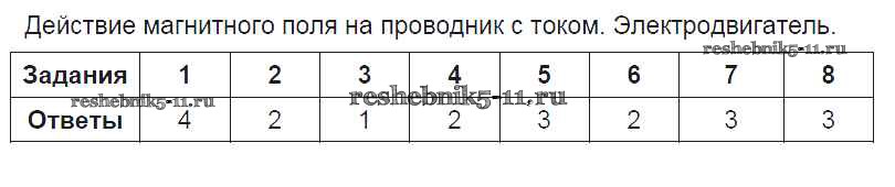 Готовая домашняя работа с ответами по Физике за 8 класс Чеботарева Тесты УМК Экзамен 2017 ФГОС - Электромагнитные явления 5. Электродвигатель. Действие магнитного поля на проводник с током