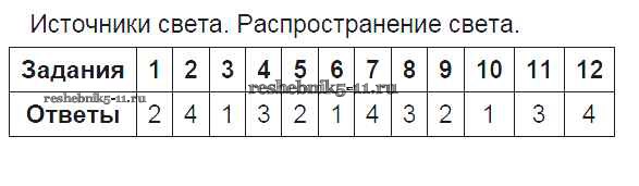 Готовая домашняя работа с ответами по Физике за 8 класс Чеботарева Тесты УМК Экзамен 2017 ФГОС - Световые явления 1. Источники света. Распространение света
