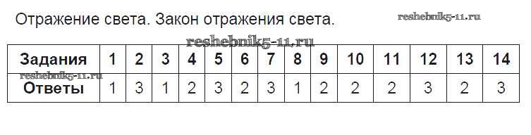Готовая домашняя работа с ответами по Физике за 8 класс Чеботарева Тесты УМК Экзамен 2017 ФГОС - Световые явления 3. Отражение света. Закон отражения света
