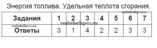 Готовая домашняя работа с ответами по Физике за 8 класс Чеботарева Тесты УМК Экзамен 2017 ФГОС - Часть 1 9. Энергия топлива. Удельная теплота сгорания