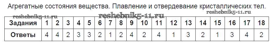 Готовая домашняя работа с ответами по Физике за 8 класс Чеботарева Тесты УМК Экзамен 2017 ФГОС - Часть 2 1. Агрегатные состояния вещества. Плавление и отвердевание кристаллических тел