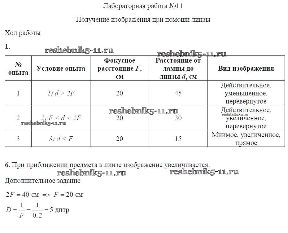 Готовая домашняя работа с ответами по Физике за 8 класс Минькова, Иванова Тетрадь для лабораторных работ УМК Экзамен 2014 ФГОС - Лабораторные работы ЛР №11. Получение изображения при помощи линзы