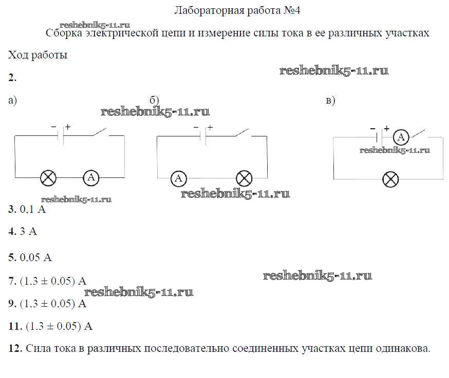 Готовая домашняя работа с ответами по Физике за 8 класс Минькова, Иванова Тетрадь для лабораторных работ УМК Экзамен 2014 ФГОС - Лабораторные работы ЛР №4. Сборка электрической цепи и измерение силы тока в её различных участках