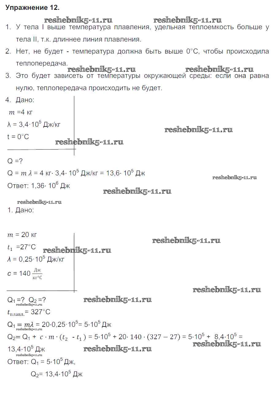Готовая домашняя работа с ответами по Физике за 8 класс Перышкин Учебник Вертикаль Дрофа 2014 ФГОС - Упражнения 12