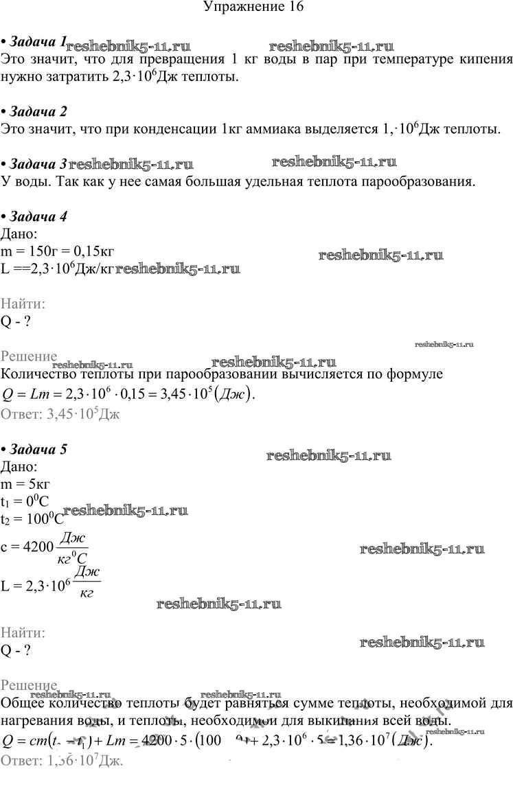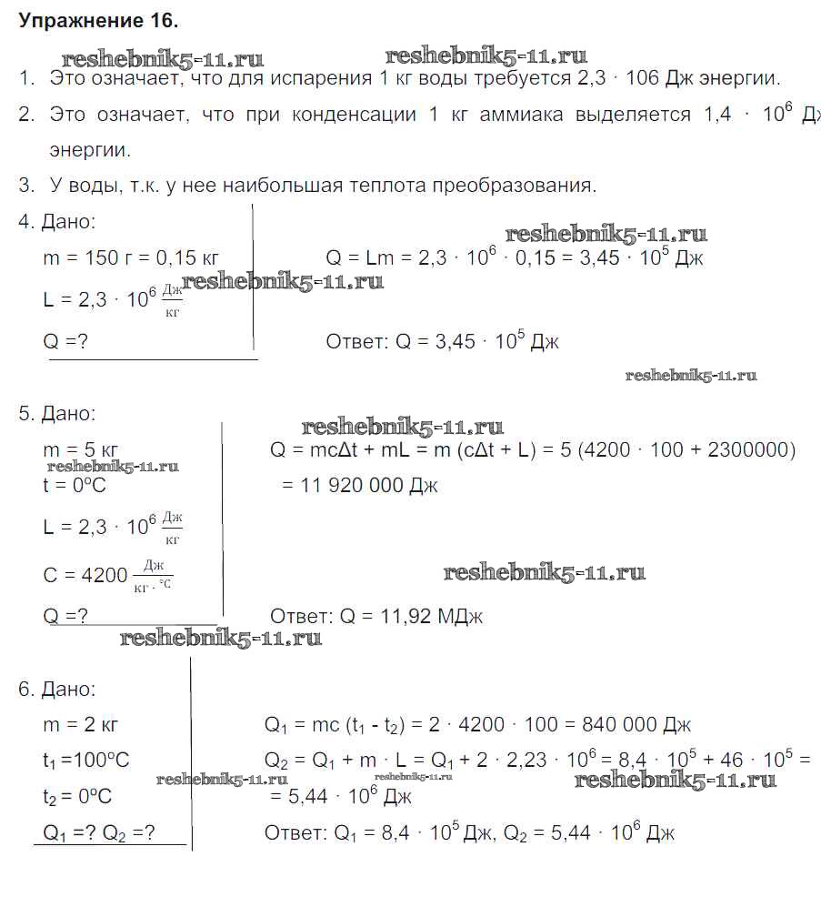 Готовая домашняя работа с ответами по Физике за 8 класс Перышкин Учебник Вертикаль Дрофа 2014 ФГОС - Упражнения 16