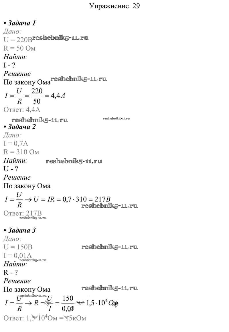 Готовая домашняя работа с ответами по Физике за 8 класс Перышкин Учебник Вертикаль Дрофа 2014 ФГОС - Упражнения 29