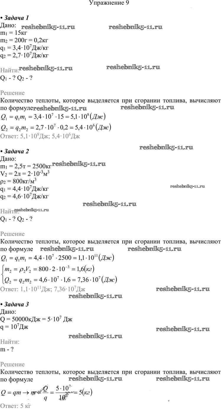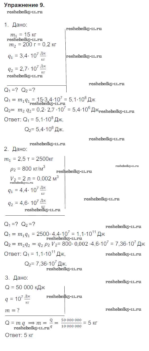 Готовая домашняя работа с ответами по Физике за 8 класс Перышкин Учебник Вертикаль Дрофа 2014 ФГОС - Упражнения 9