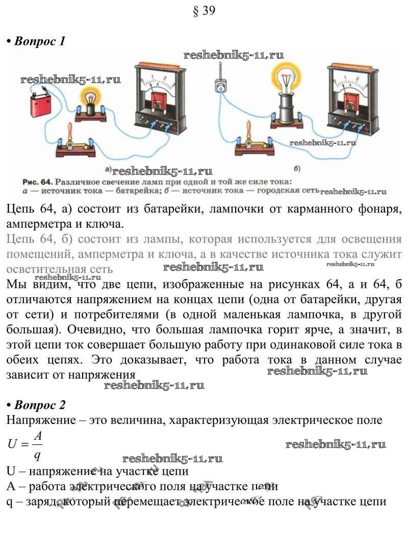 Физика за 8 класс Перышкин Учебник Вертикаль Дрофа вопрос § 39