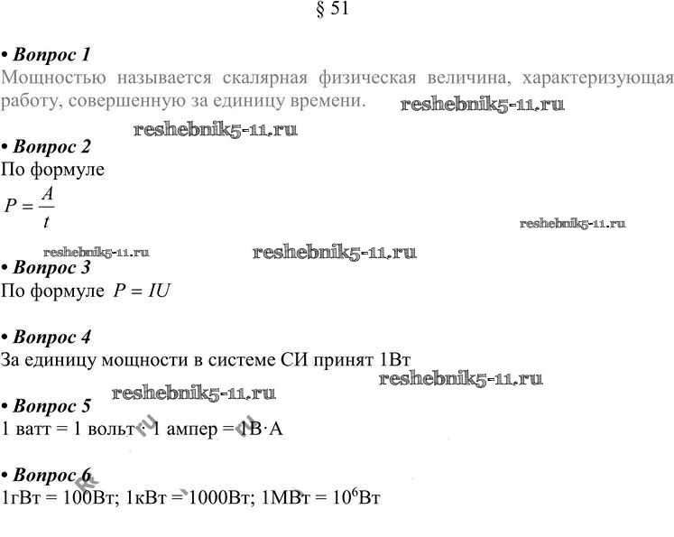 Готовая домашняя работа с ответами по Физике за 8 класс Перышкин Учебник Вертикаль Дрофа 2014 ФГОС - Вопросы в параграфе § 51