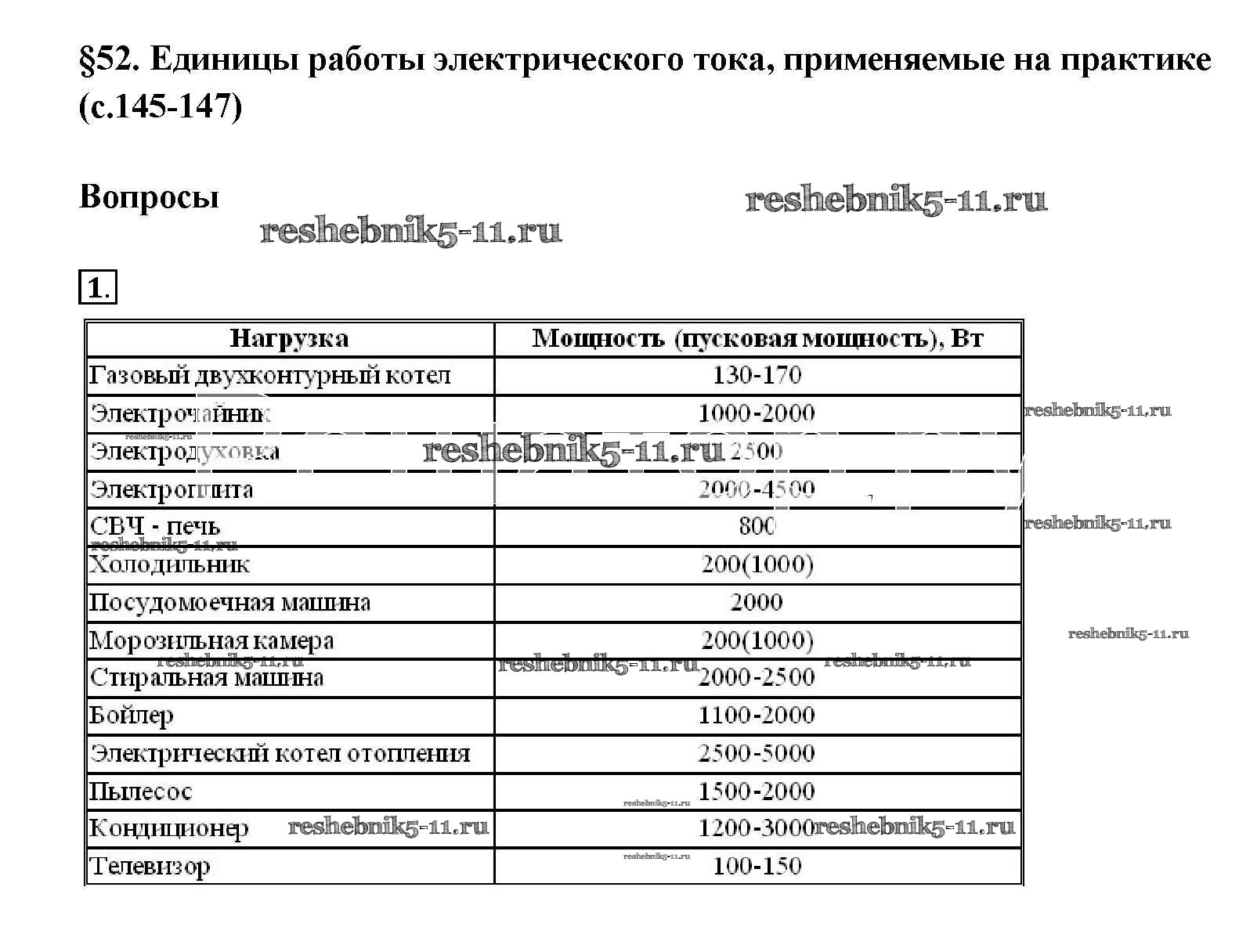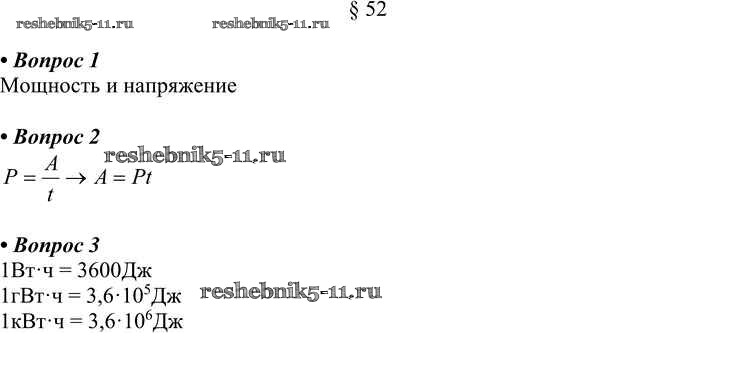 Физика за 8 класс Перышкин Учебник Вертикаль Дрофа вопрос § 52