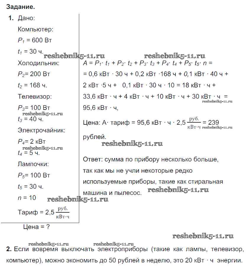 Готовая домашняя работа с ответами по Физике за 8 класс Перышкин Учебник Вертикаль Дрофа 2014 ФГОС - Задания § 52