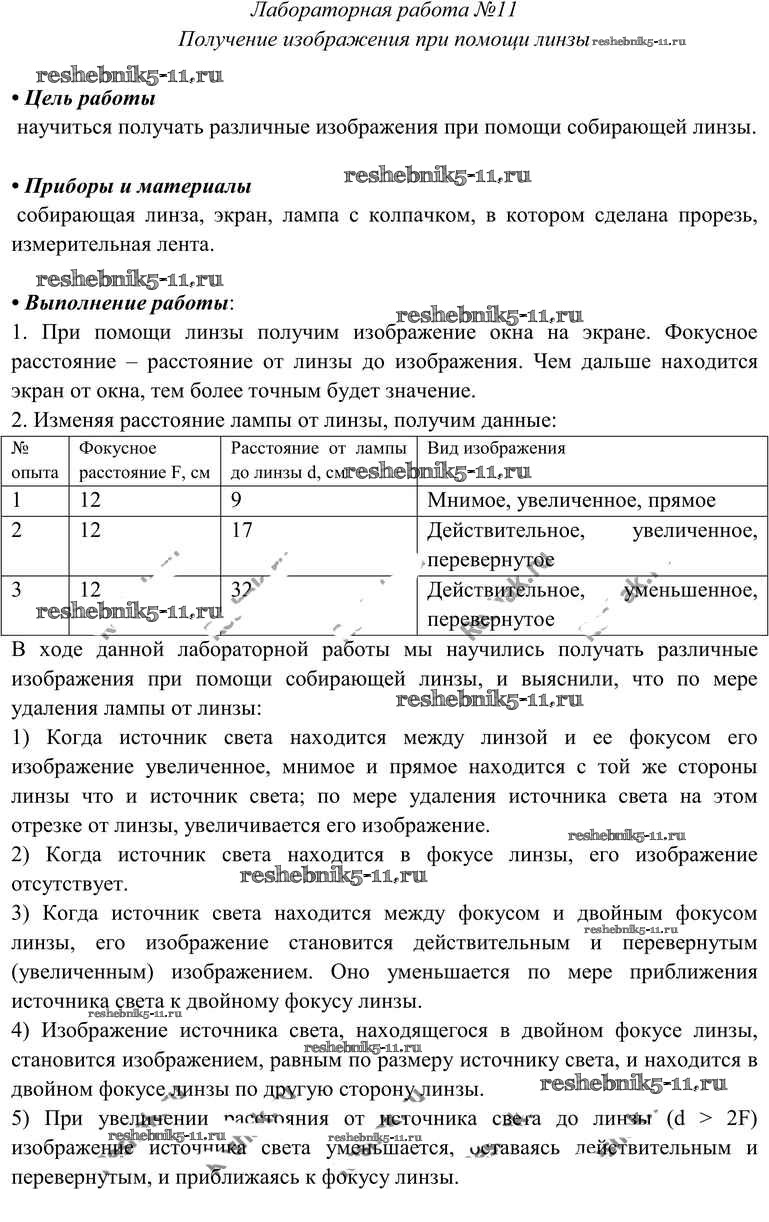 Готовая домашняя работа с ответами по Физике за 8 класс Перышкин Учебник Вертикаль Дрофа 2014 ФГОС - Лабораторные работы ЛР-11