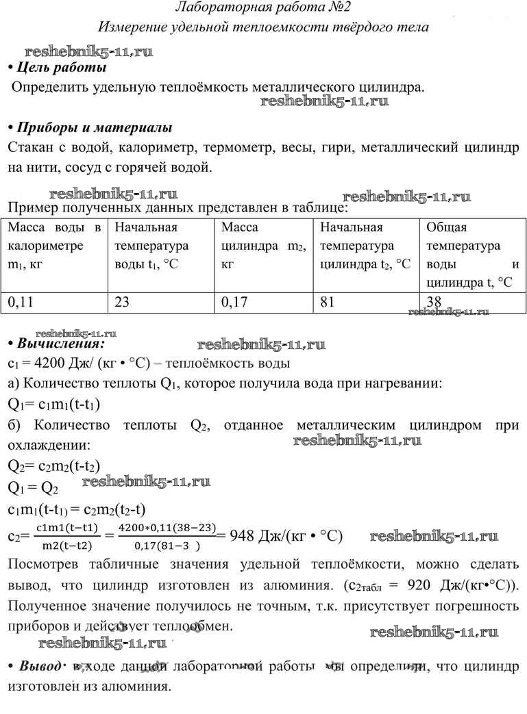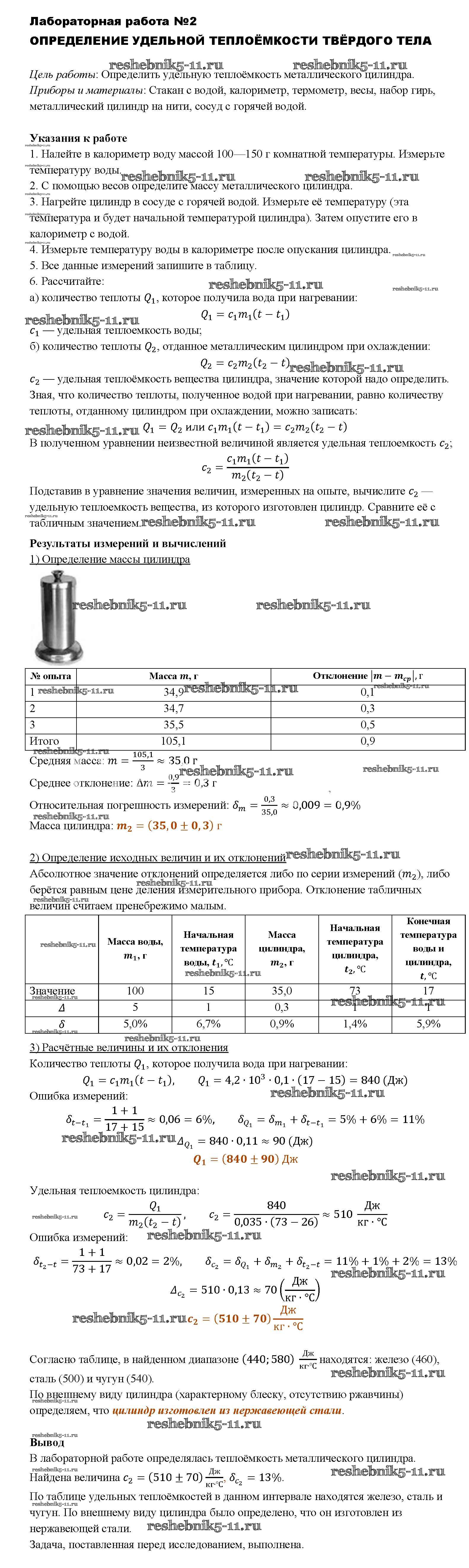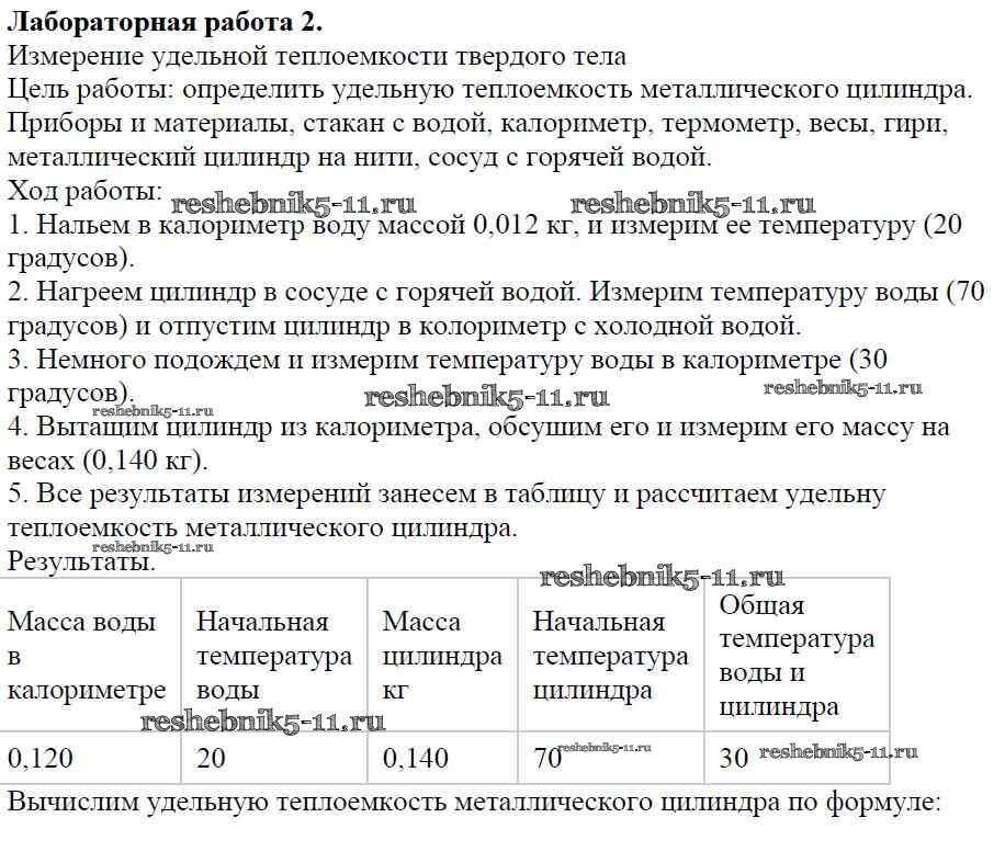 Готовая домашняя работа с ответами по Физике за 8 класс Перышкин Учебник Вертикаль Дрофа 2014 ФГОС - Лабораторные работы ЛР-2