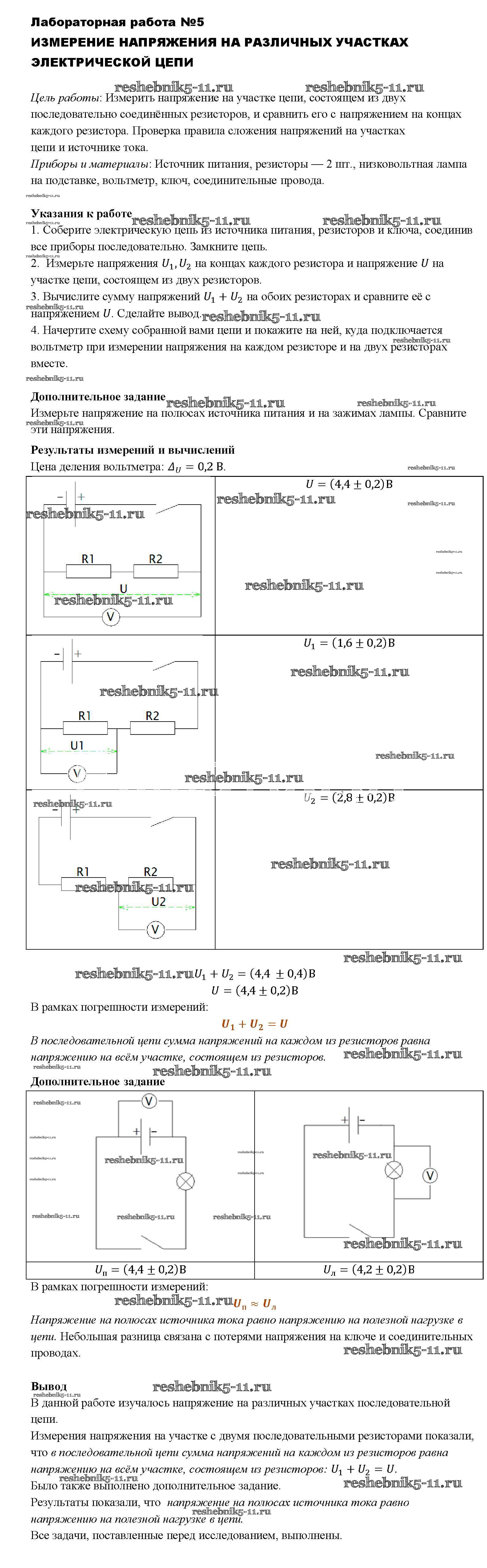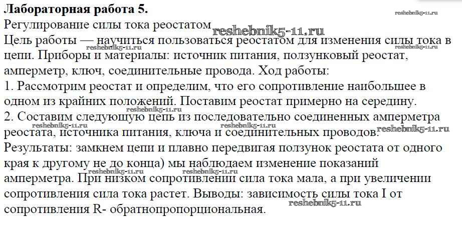 Готовая домашняя работа с ответами по Физике за 8 класс Перышкин Учебник Вертикаль Дрофа 2014 ФГОС - Лабораторные работы ЛР-5