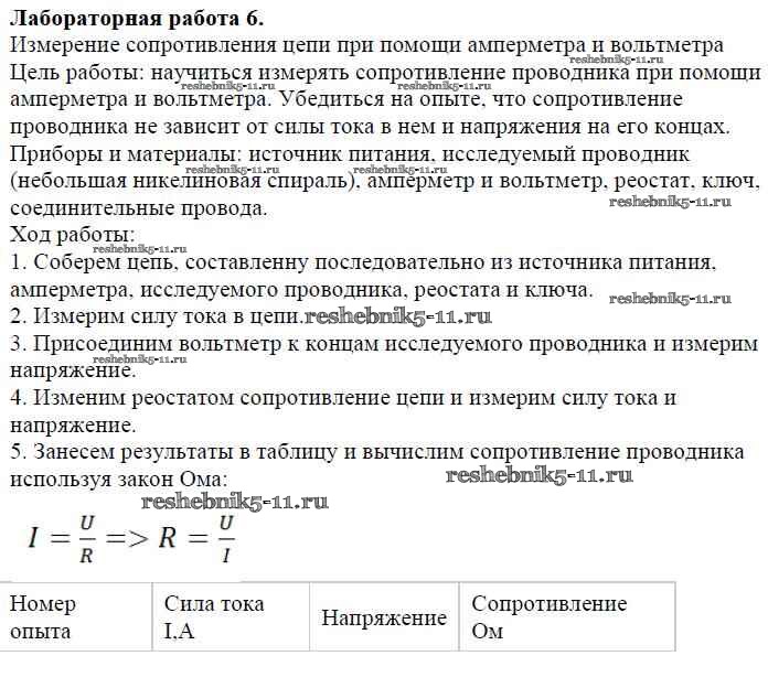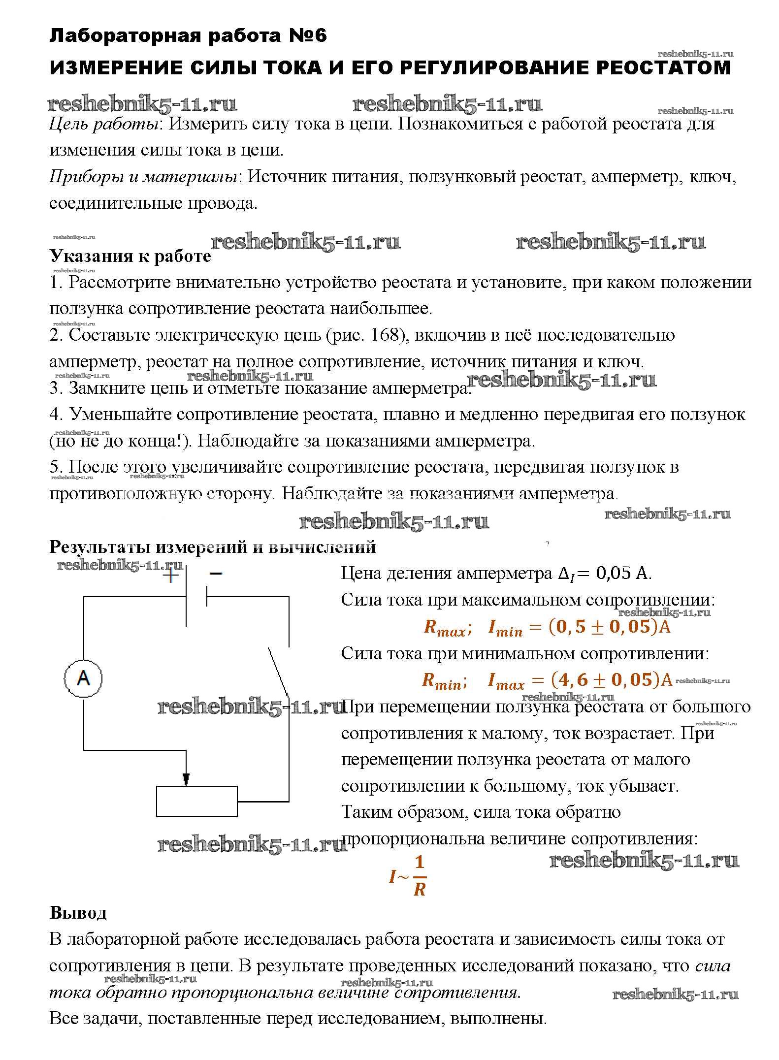 Готовая домашняя работа с ответами по Физике за 8 класс Перышкин Учебник Вертикаль Дрофа 2014 ФГОС - Лабораторные работы ЛР-6