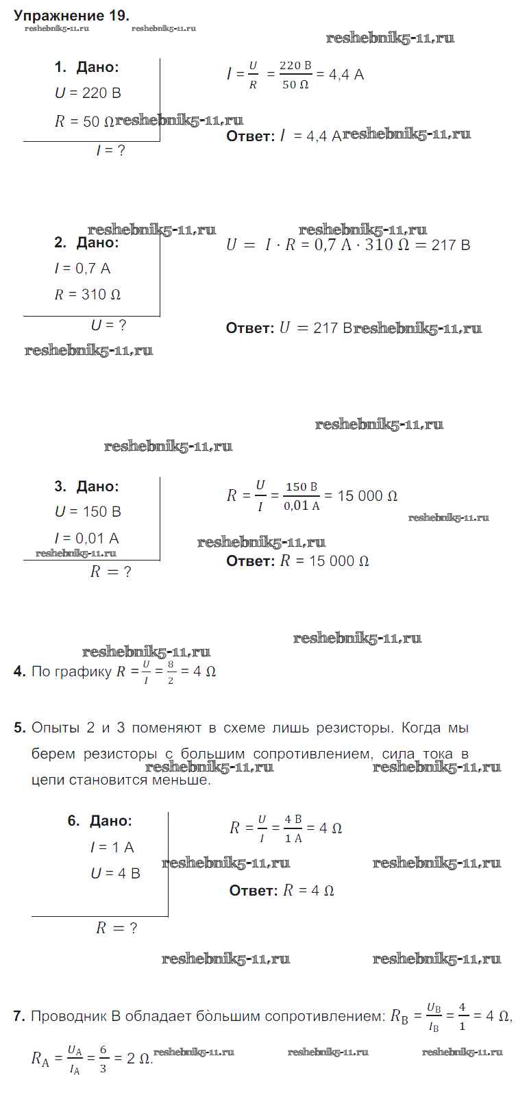 Готовая домашняя работа с ответами по Физике за 8 класс Перышкин Учебник Вертикаль Дрофа 2014 ФГОС - Упражнения 19