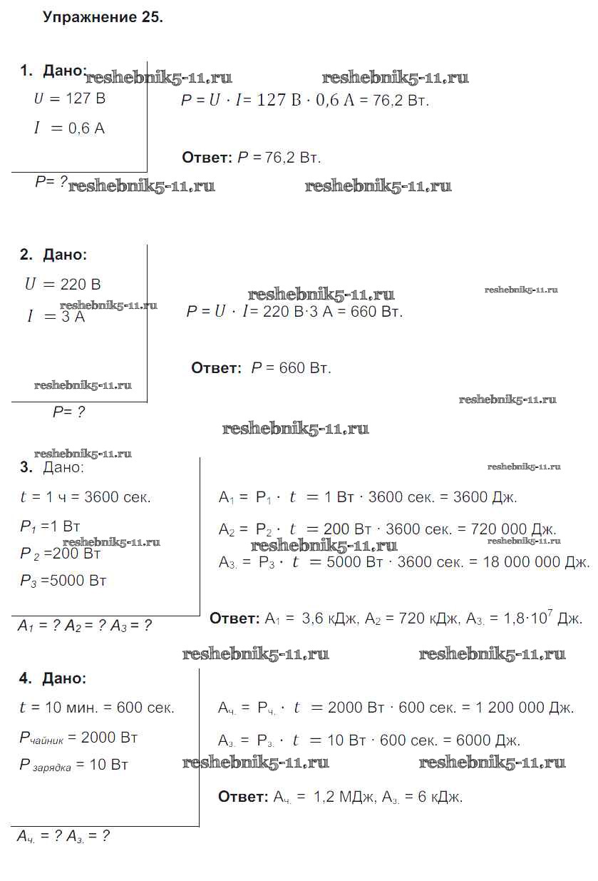 Физика за 8 класс Перышкин Учебник Вертикаль Дрофа упражнение 25