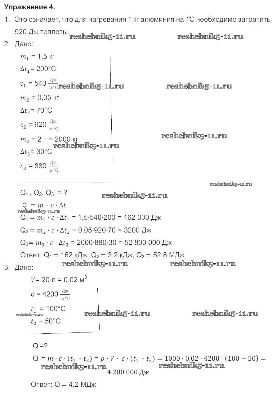 Готовая домашняя работа с ответами по Физике за 8 класс Перышкин Учебник Вертикаль Дрофа 2014 ФГОС - Упражнения 4