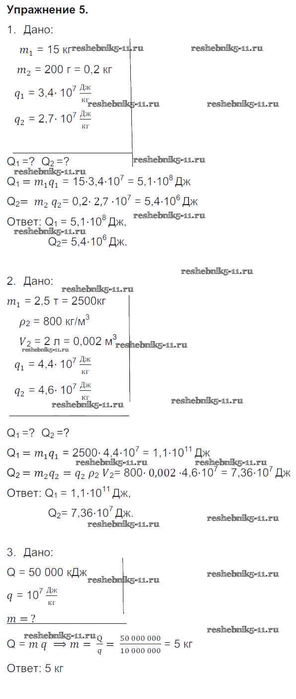 Готовая домашняя работа с ответами по Физике за 8 класс Перышкин Учебник Вертикаль Дрофа 2014 ФГОС - Упражнения 5