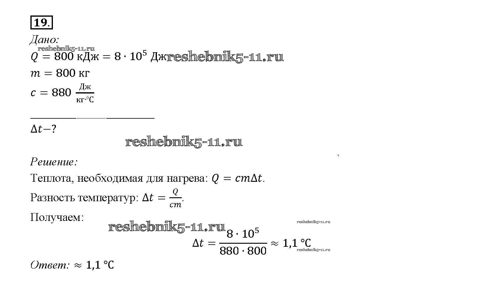 Физика за 8 класс Перышкин Учебник Вертикаль Дрофа задача 19