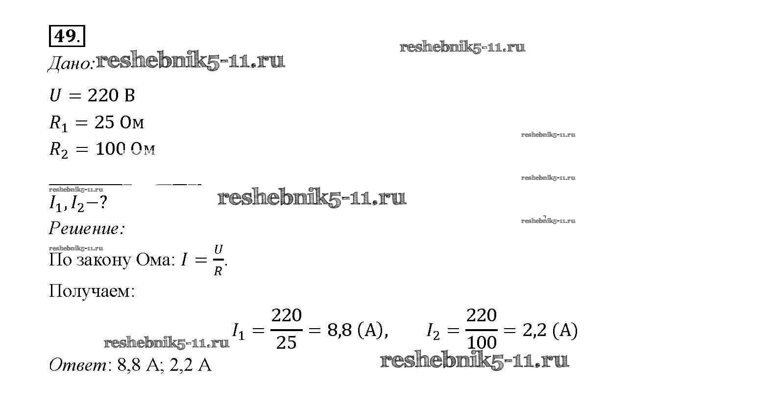 Физика за 8 класс Перышкин Учебник Вертикаль Дрофа задача 49