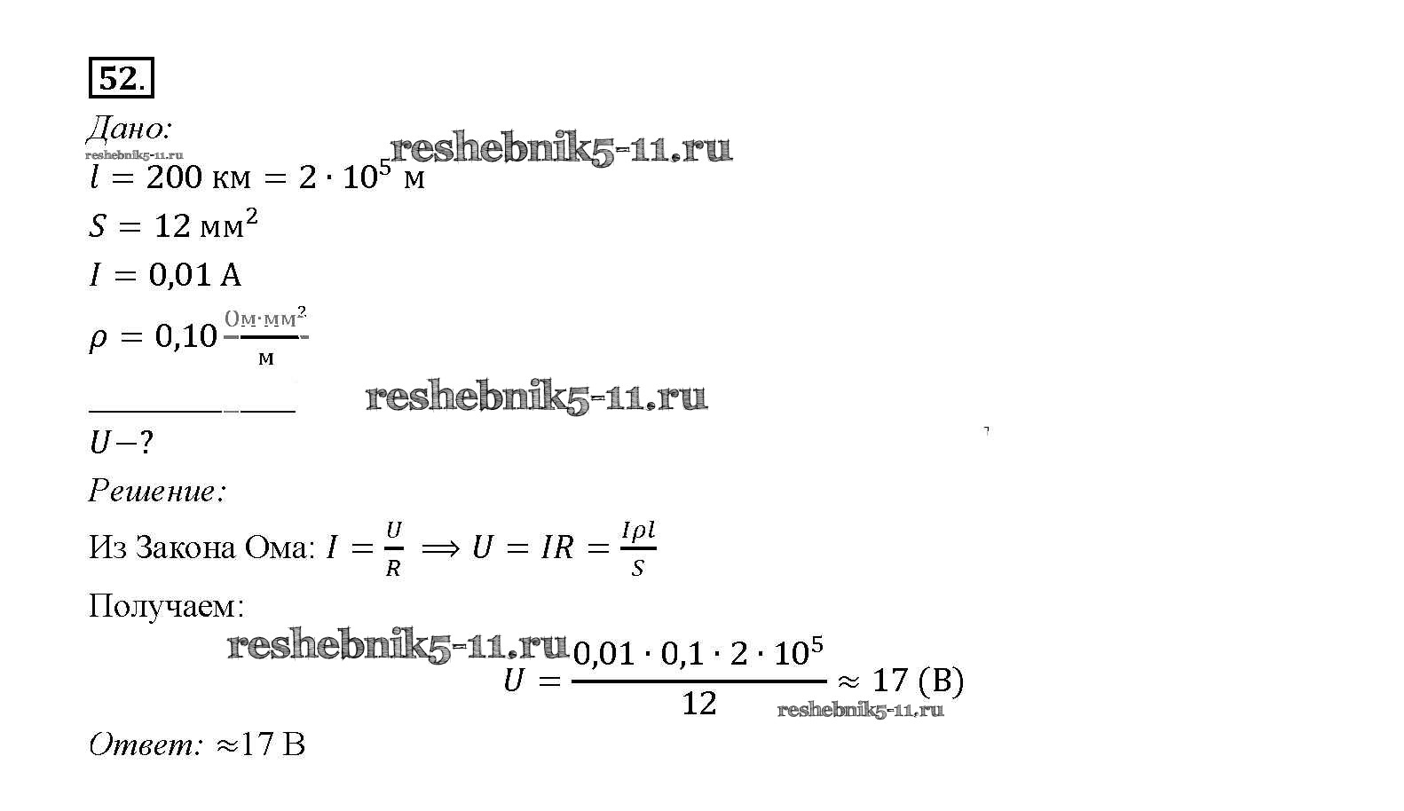 Физика за 8 класс Перышкин Учебник Вертикаль Дрофа задача 52