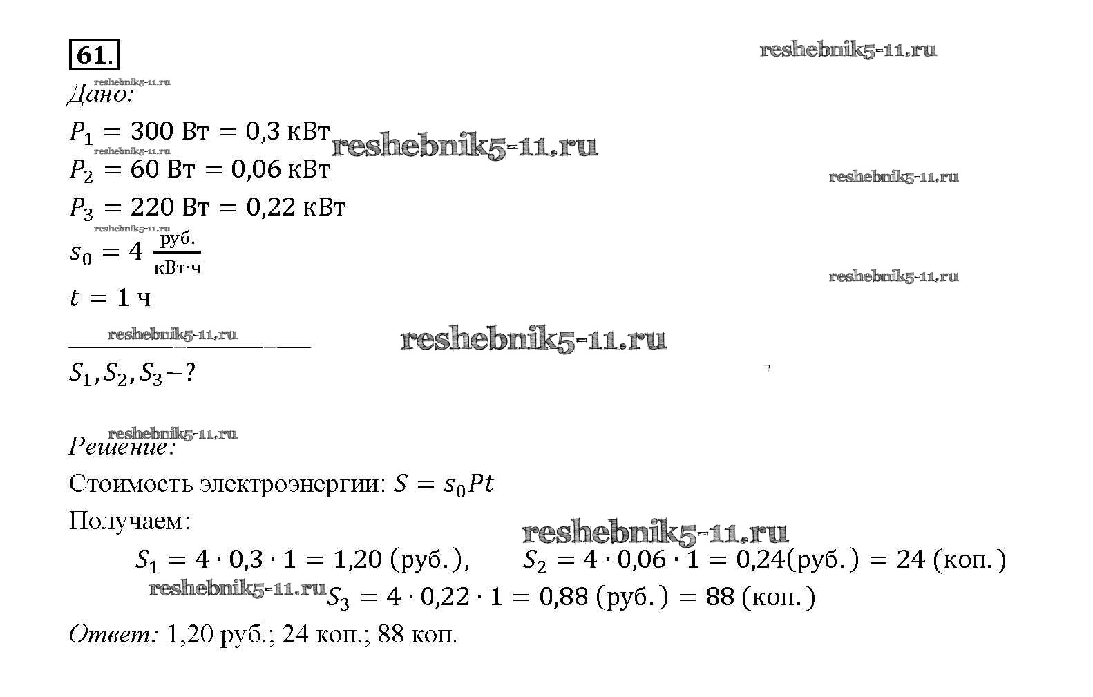 Физика за 8 класс Перышкин Учебник Вертикаль Дрофа задача 61