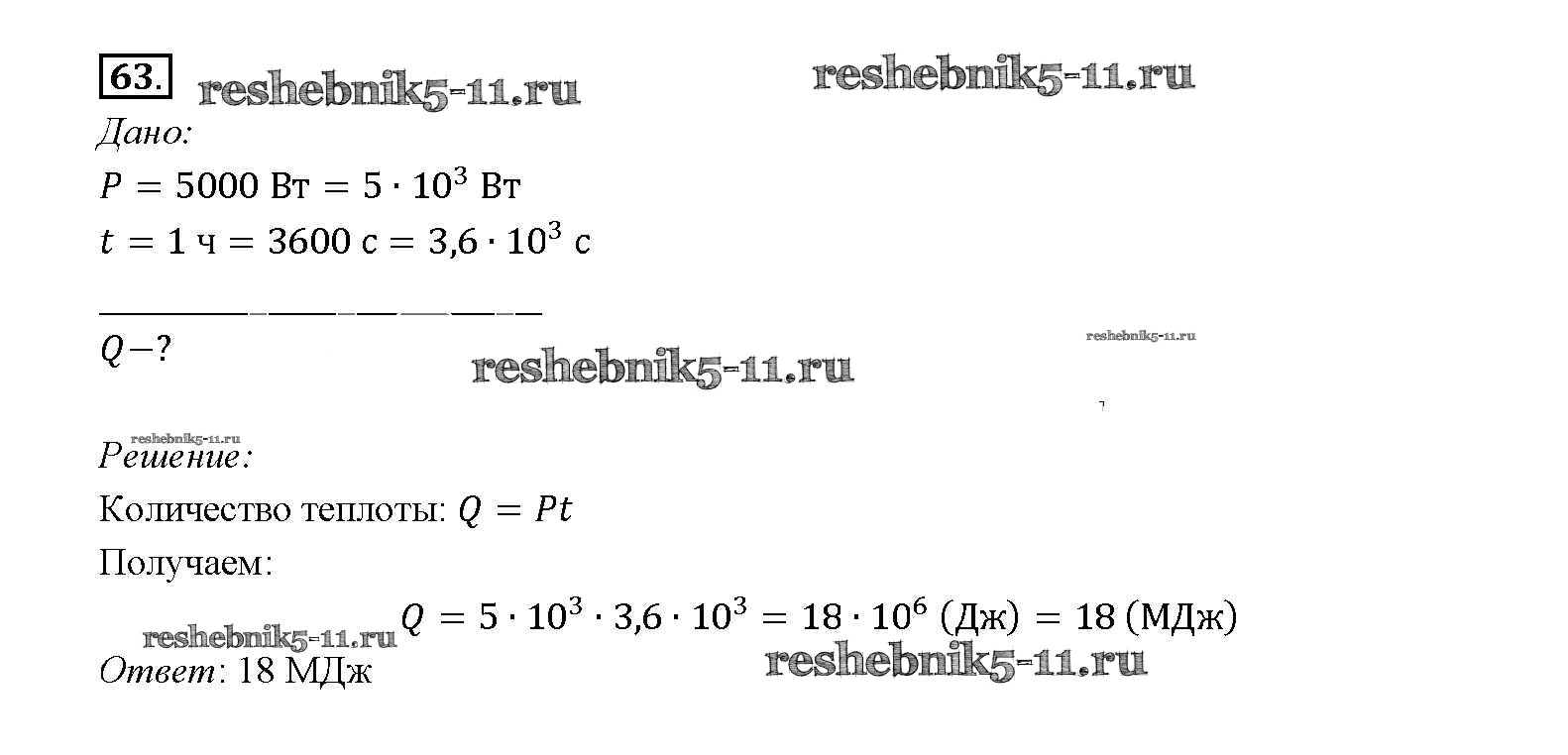 Физика за 8 класс Перышкин Учебник Вертикаль Дрофа задача 63