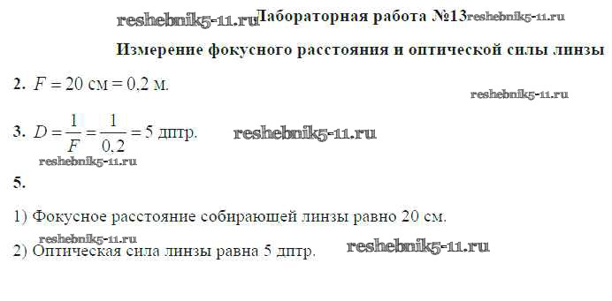 Готовая домашняя работа с ответами по Физике за 8 класс Громов, Родина, Белага Учебник Просвещение 2018 ФГОС - Лабораторные работы ЛР №13. Измерение фокусного расстояния и оптической силы линзы