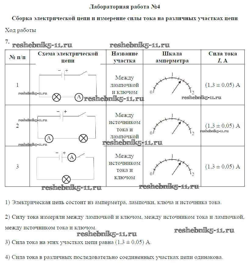 Готовая домашняя работа с ответами по Физике за 8 класс Громов, Родина, Белага Учебник Просвещение 2018 ФГОС - Лабораторные работы ЛР №4. Сборка электрической цепи и измерение силы тока на различных участках цепи