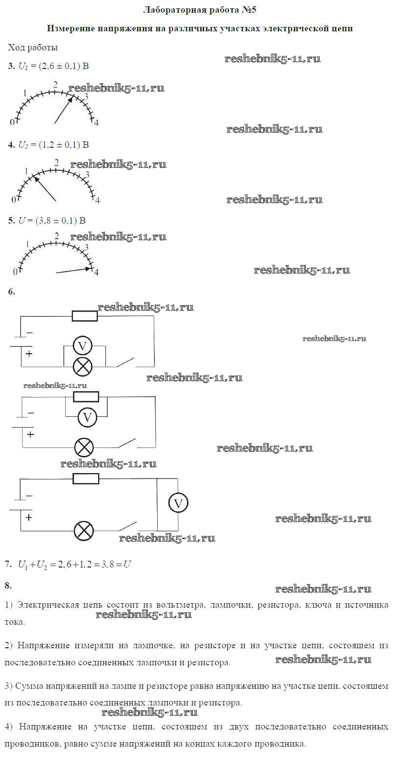 Готовая домашняя работа с ответами по Физике за 8 класс Громов, Родина, Белага Учебник Просвещение 2018 ФГОС - Лабораторные работы ЛР №5. Измерение напряжения на различных участках электрической цепи